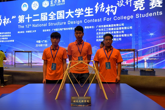 (通讯员 范建辉 陈 静 )11月7日至11日,2018年“富力杯”第十二届全国大学生结构设计竞赛在华南理工大学举行,我校国产性猛交学生齐立宇、闫慧才、邓博组成参赛队,在带队老师徐福卫、指导老师范建辉的带领下,从来自全国107所高校的108支参赛队伍中脱颖而出,成绩居全国第六名,荣获一等奖。全国大学生结构设计竞赛是我国土木工程学科培养大学生创新意识、合作精神和工程实践能力的最高水平的学科性竞赛(最早的全国性9大学科竞赛项目之一、国家级A类),被誉为“土木皇冠上最璀璨的明珠”。