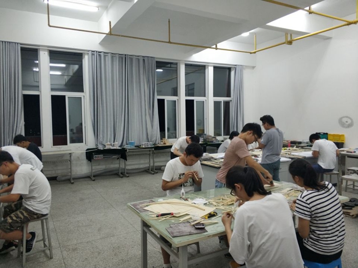 2018年初,范建辉就选好了预备队伍,4月初拿到了赛题之后就立即着手购置材料。根据以往的经验想要取得更好的成绩就必须将结构优化到极致,对加载设备的要求必须达到精准,于是就直接购置了一台加载设备。从校赛选拔结束到省赛开始足足40天的时间,范建辉和团队成员们踏踏实实的做好基础工作,不放过任何一个微小的细节,基本上每天晚上和周末都是在工作室度过。