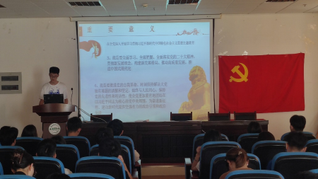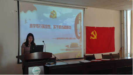 本次党日活动围绕七项内容展开。第一项,全体起立,奏唱国歌《义勇军进行曲》;第二项,全体学生党员重温入党誓词;第三项,由杜玉蝶同志带领大家学习并诵读《中国共产党章程》,增强对党的认识,加深政治信仰;第四项,由周鑫悦同志带领大家学习了《习近平著作选读》第一卷、第二卷,并分享学习心得:“学习了《习近平著作选读》第一卷、第二卷,必将把学习贯彻习近平新时代中国特色社会主义思想进一步引向深入。全党全国各族人民要更加紧密地团结在以习近平同志为核心的党中央周围,全面贯彻习近平新时代中国特色社会主义思想,弘扬伟大建党精神,牢记‘三个务必’,自信自强、守正创新,踔厉奋发、勇毅前行,为全面建设社会主义现代化国家、全面推进中华民族伟大复兴而团结奋斗!”;第五项,任春同志为大家讲党课;第六项,各支部交流发言,戴想、刘一明、侯熙华依次发言;第七项。各支部小组相互讨论,党员们交流讨论自己的学习心得,表示自己在今后要把习近平新时代中国特色社会主义思想贯彻落实到学习工作中。