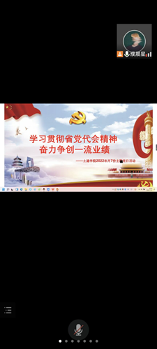 (通讯员 赵小艺)2022年7月25日下午六点三十分,国产性猛交学生党支部在线上开展了以“学习贯彻省党代会精神 奋力争创一流业绩” 为主题的党日活动。