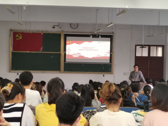 本次党课授课教师为学工处副处长高其文教授,党课的主题是《中美博弈背景下,中国共产党的使命与担当》。高老师向同学们分析了当今的国际形势,同时也让同学们意识到:在中国共产党的领导下中国如今的国际地位。高老师授课声情并茂,慷慨激昂,在课堂上通过讲述新中国以来的不同建国方针与建国探索,让同学们感受党在建设国家与造福人民生活的关切性与积极性。高教授提到:“中国共产党的国际影响力,根植于其初心使命和自身在百年的历史发展进程中取得的伟大成就。”让同学们更清晰的了解到当今中国的形式,同时能树立正确的人生目标,为党和人民贡献出自己应有的力量。