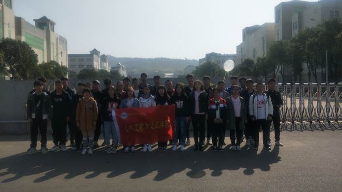 (志愿者们在校门口集合拍照 照片来自于土建学院志愿服务部)