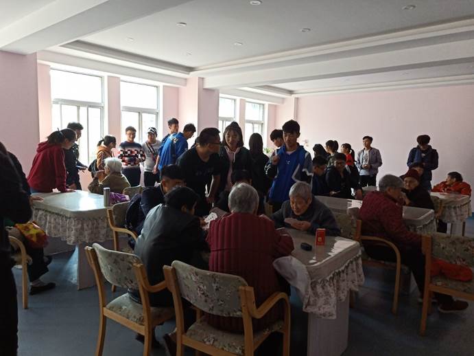 (志愿者们在和老人互动 照片来自于土建学院志愿服务部)