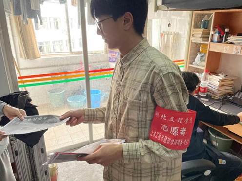 (通讯员 张依欣 胡天骄)为践行、传承雷锋精神,2022年3月24日,湖北文理学院土建学院志愿者在校内道路及各寝室楼下开展以“派发雷锋精神传单”为主题的志愿服务活动。