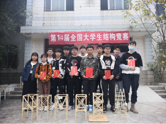 本次比赛,共有32支队伍参加比赛,其中有土建学院、机械学院、交通学院等多个二级学院的同学参加比赛。参赛作品结构设计各具特色,最终由来自交通学院的李佳远带领的队伍以100分的高分获得第一名,他们的结构作品只有75g,却承受了82kg的荷载。大赛最终还决出二等奖和三等奖,并现场举行了颁奖仪式。