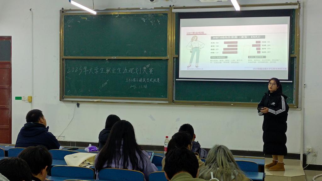 (通讯员 罗萌)“凡事预则立,不预则废”。一个人想要立足职场,职业生涯规划是不可忽视的一部分。为帮助同学们综合考量自身能力,明确职业目标和努力方向,土建学院于2023年11月28日18点30分在N8-507举行了2023年大学生职业生涯规划大赛。担任本次比赛的评委是学工办辅导员刘雨荷、冷翔、潘将军。