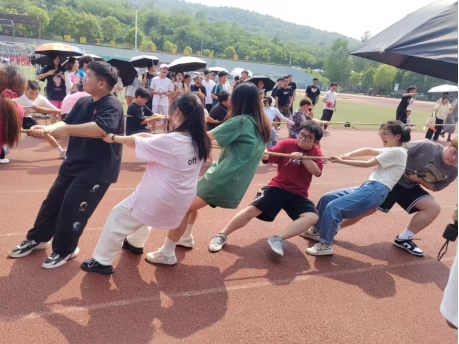 下午2点30分,同学们准时在田径场上集合等候,主持人在开幕式上介绍了活动目的与活动安排,最后宣布趣味运动会正式开始。本次趣味运动会一共有六个游戏环节,分别是拔河、不倒森林、螃蟹背西瓜、巷子赶猪、摸石头过河和铁人三项。在拔河比赛中,各班代表队伍使出浑身力气,挥洒下激情和汗水。欢呼声、鼓掌声、笑声、加油声此起彼伏,氛围轻松欢快,参赛的同学们活力四射,热情高涨。创新的铁人三项活动加入了学院特色,最后一关是三人合力在五分钟内用限定的材料搭建出一个房子,在此过程中,参赛同学们团结合作,争分夺秒,展现了土建学子风采。