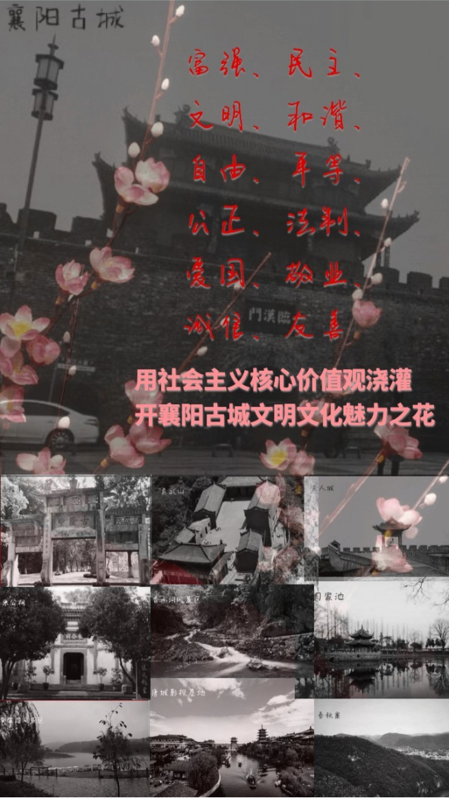 湖北文理学院坐落于拥有悠久历史文化底蕴的襄阳,襄阳近几年正在争创全国文明城市,作为新时代大学生应当展现出青春的责任与担当,为襄阳的文明建设贡献一部分力量。“突显襄阳古城魅力,助推襄阳文明发展”活动以征集公益广告的方式,呼吁人们讲文明﹑树新风,提升自身文明素养。公益广告主要以标语﹑海报手抄报﹑景观小品﹑抖音、快手短视频、微电影、动画短片等形式围绕社会主义核心价值观、中国梦、志愿服务精神、讲文明树新风等创文应知应会知识进行制作。创造全国文明城市不仅需要环境舒适整洁,每位公民良好的文明素养也是一个文明城市的重要组成部分。