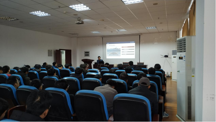 讲座中,孙晓伟讲述了沉管隧道的发展历程﹑项目介绍﹑关键施工技术﹑个人的工作经历与感悟四个方面的内容。其中他为大家介绍了沉管隧道项目的优缺点,并着重介绍了关键施工技术中的八个重要步骤,以自身在沉管隧道项目中的经历与体会,向大家解读了项目中的难题与创新。