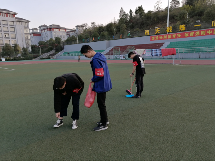 早上天气虽冷,但是大家文明执勤的心却没有动摇,志愿者们拿起工具便开始打扫,走廊乱丢的垃圾﹑墙上贴的小广告﹑教室里遗忘在角落的纸团﹑藏在抽屉里的塑料袋等等,这些影响创文行动的现象都被志愿者们细心发现并处理掉。操场看似干净,但在草坪、角落里依然隐藏着很多垃圾,志愿者们不畏惧脏臭将这些垃圾清捡了出来。每天的文明执勤,志愿们“脏”在其中,更是“乐”在其中,只为将校园环境打扫更加干净,为创文出力。