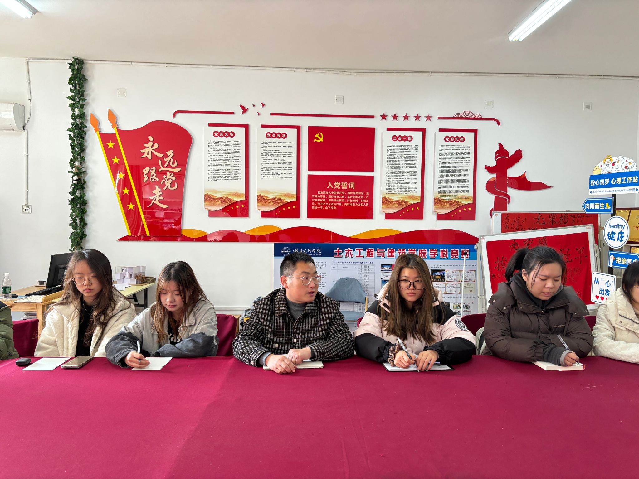 2月18日中午,土建学院辅导员潘将军组织团委学生干部在“筑梦”学生社区对学院寒假“返家乡”社会实践经验成果进行总结,同时规划部署2025年团委学生工作。