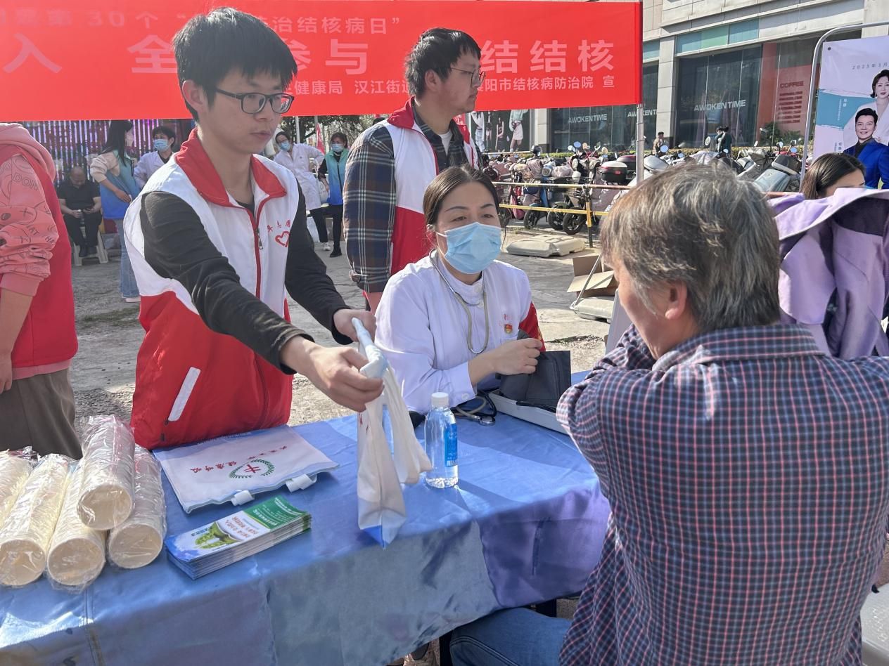 活动现场,襄阳市结核病防治院的医护人员与志愿者们共同为市民提供免费义诊服务,包括结核病筛查咨询、血压测量、健康指导等。志愿者们化身“健康宣传员”,协助医护人员分发宣传手册,耐心解答市民疑问。一位参与义诊的市民感慨道:“这样的活动既贴心又实用,让我们在家门口就能享受到专业的健康服务。”