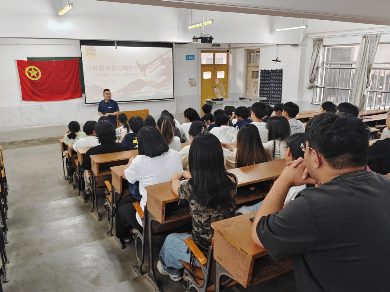 仪式在庄严的共青团团歌声中正式开始。潘将军在致辞中强调,共青团员作为党的助手和后备军,必须坚定理想信念,提高政治觉悟,始终保持昂扬向上的奋斗精神。他指出,新时代的青年团员要主动夯实理论基础,主动投身实践,在学业发展和社会服务中发挥表率作用。通过解析青年成长案例,潘将军强调持续提升思想认知的重要性,勉励学员既要树立远大志向,又要立足当下做好本职工作。