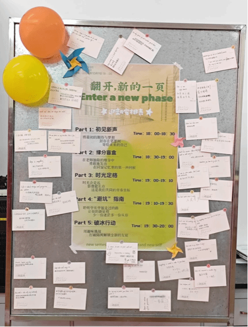 以“翻开新的一页”为序章,本次迎新见面会为新生们精心铺设了一条从迷茫到坚定、从陌生到熟悉的融入之路。活动通过五个精心设计的环节,层层递进,引领新生开启大学新生活。在“初见新声”环节,新生们俯身桌前,在明信片上笔尖流转,写下最触动心弦的一句话,再庄重地汇入展板,汇成一片星光璀璨的“心愿墙”。这小小的仪式,既是个人梦想的宣告,也是建筑人“以文载道、薪火相传”精神的第一次集体实践。