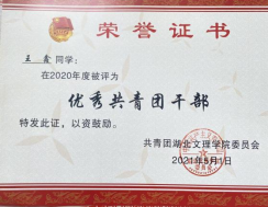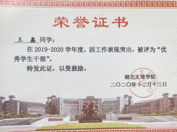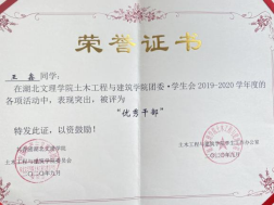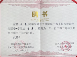 王鑫,男,中共党员,国产性猛交工程造价1811班学生。入校以来,积极在班级、团委·学生会、社团贡献力量,表现突出;曾担任班级班长,土建学院团委·学生会主席等职务,结合自己丰富学生工作经历,发表《浅谈高校学生会发展问题及对策》论文;工作期间曾获得优秀学生干部、优秀共青团员、优秀共青团干部、创新创业奖学金、优秀干事、优秀组织者等荣誉。2020年10月他带领工造1811获“优良学风班”荣誉称号,2021年6月,他带领土建学院团委·学生会获得“优秀学生会”荣誉称号,2021年10月他带领工造1811班获“文明班级”荣誉称号。在大四,成功签约中铁十一局。